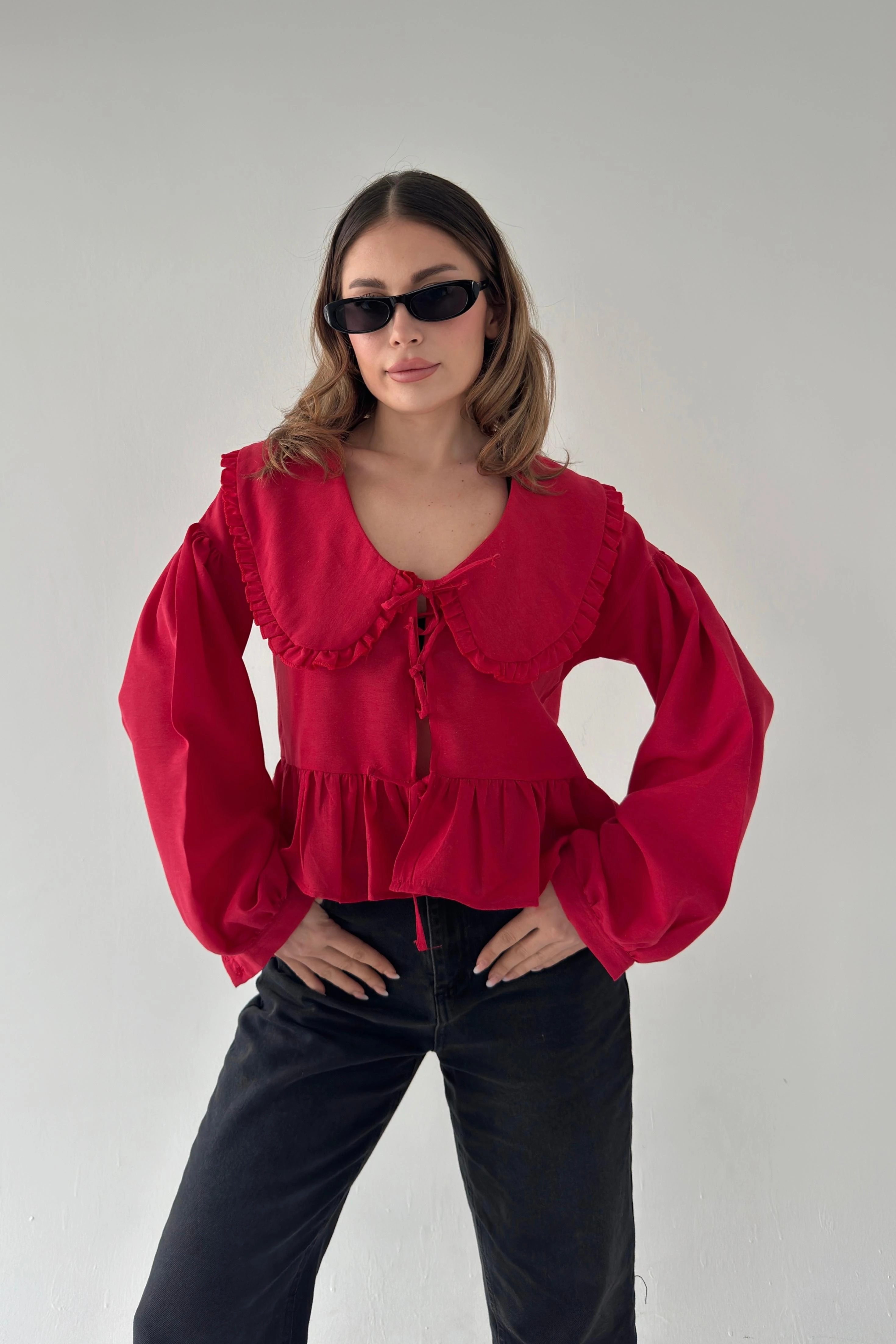 Lüx Kalite Bağlamalı Poplin Gömlek BB0250 - kırmızı1