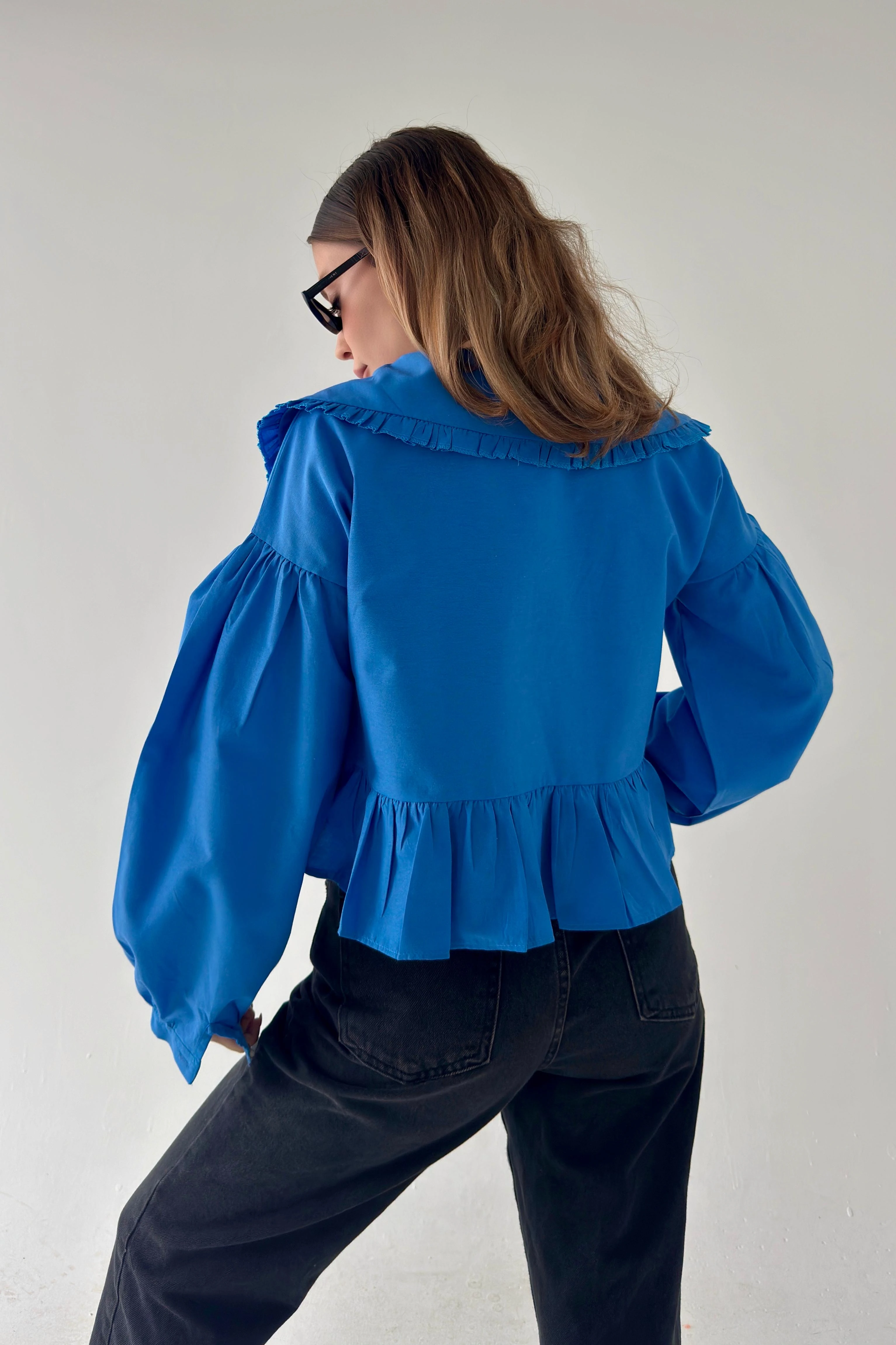 Bağlamalı Tiril Gömlek H2228 - mavi